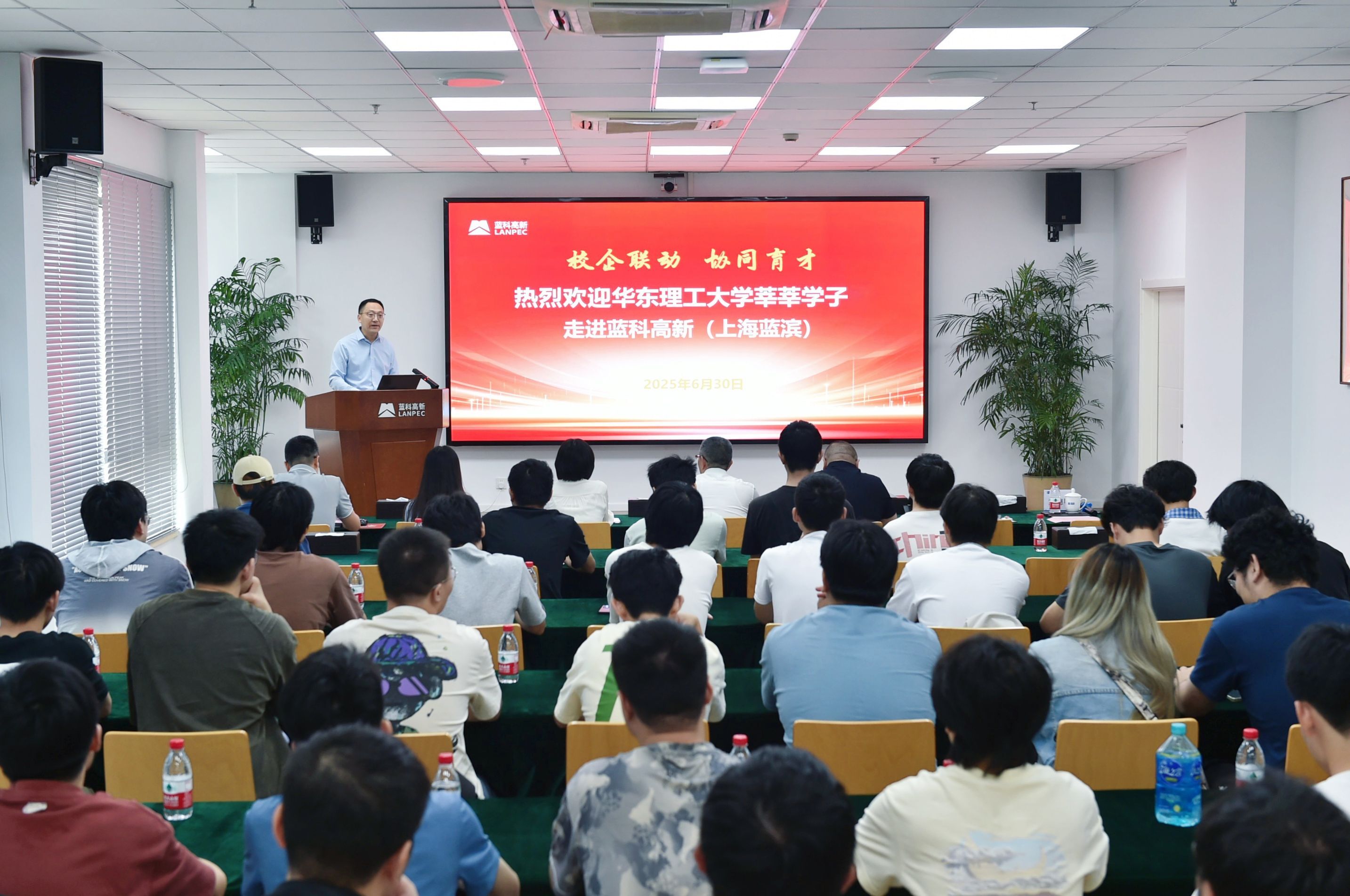 ????6月30日至7月2日,“校企聯動、協同育才,華東理工大學師生走進藍科高新”活動在藍科高新上?;仨樌e辦。華東理工大學動力工程系主任、博士生導師黃毓暉教授,機械與動力工程學院馬麗坤老師,過程裝備與控制專業(yè)130名學生參加?;顒佑晒救肆Y源部(黨委組織部)總經理周李軍主持。
